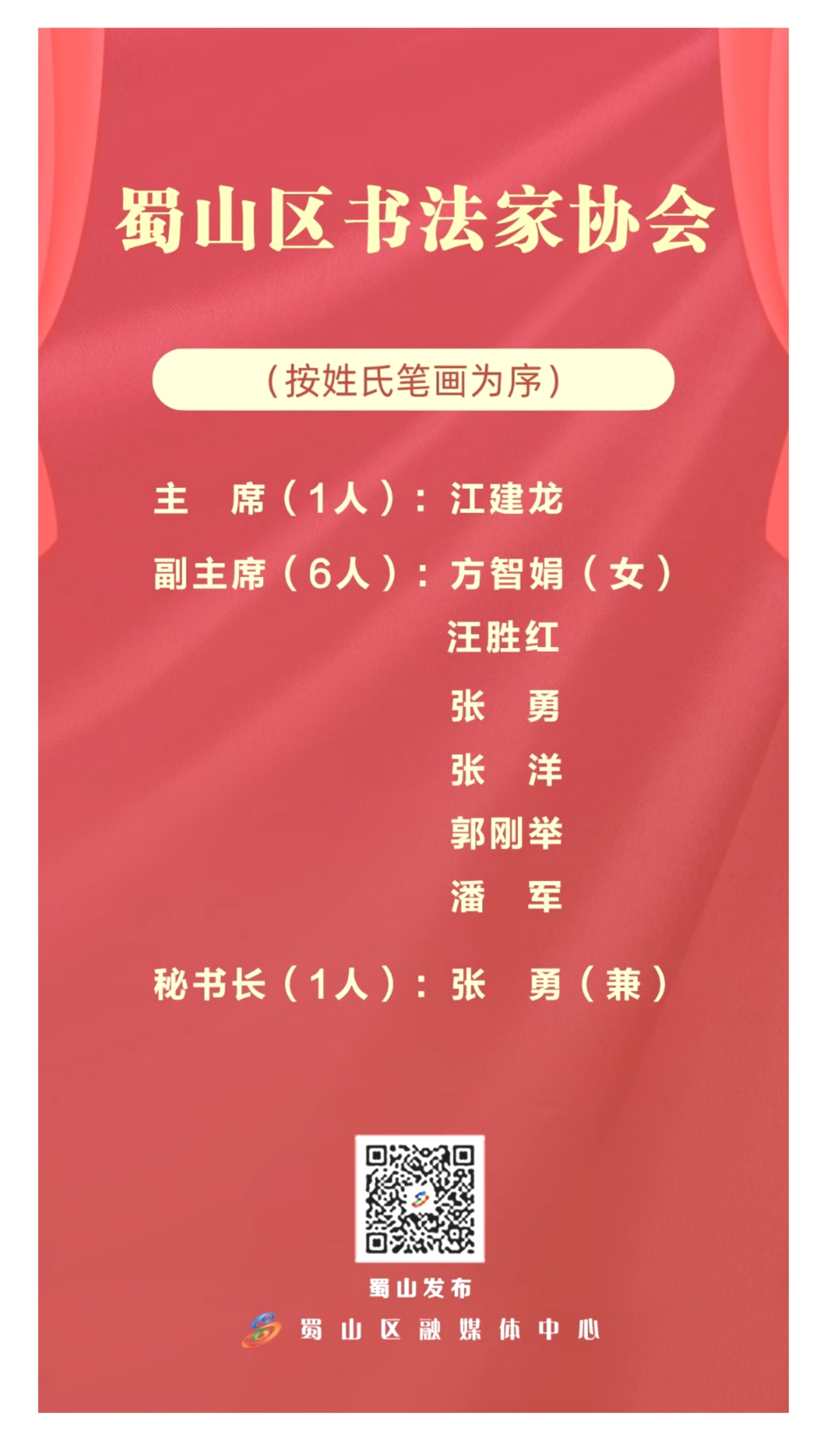据悉,蜀山区文联现设美术家协会、音乐舞蹈家协会、书法家协会、戏剧家协会等文艺家协会。此次换届是为了进一步加强区文联所属各文艺家协会的科学化、规范化工作水平,促进全区文艺事业的繁荣发展。