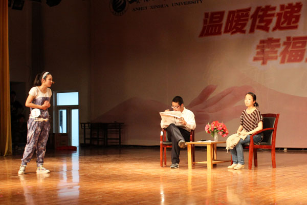 此次比赛共有十个二级学院代表队参与。文化与新闻传播学院代表队作为最先出场的队伍。2012级新闻学(1)班的张冬冬同学说:“我觉得我们的剧本没什么亮点,也许是导致我们没能获奖的主要原因吧,但是我相信我们同学们的努力是值得肯定的。”他还说:“比赛的结果不重要,重在参与,开心就好。”