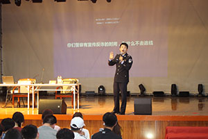 针对刚入学新生法制思想淡薄,防诈意识不强这个情况,杨础首先就一些基本法律常识与现场的学生进行了交流互动,他通过理论联系实际案例的方式,深入浅出,娓娓道来,他用通俗而接地气的语言为同学做了一堂生动的普法教育课。接下来,他运用发生在周边的案例和令人醒目的数据为大家展示电信网络诈骗带来的危害,并分析了伟德官网近年来的电诈案件情况,语言幽默风趣,台上台下互动热烈,最后以有奖竞赛的方式,为同学带来了“肥肥小警”的礼物,让同学们更加深刻了解和掌握了防骗知识。
