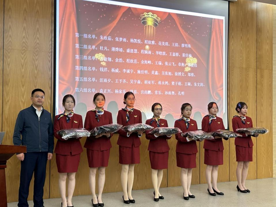本网讯(通讯员:陈珍)为体现航空服务专业的特殊性,航空服务行业制服的神圣性,同时培养学生对学校的归属感和责任意识。11月9日下午,科技学院在学术报告厅举行航空服务职业教育2023级新生授装仪式暨优秀学生表彰大会。学院执行院长孙成伟、院长助理孙马莉,航空职业教育校区主任朱晔、赵锡方,航空服务全体师生以及部分家长代表参加此次大会。