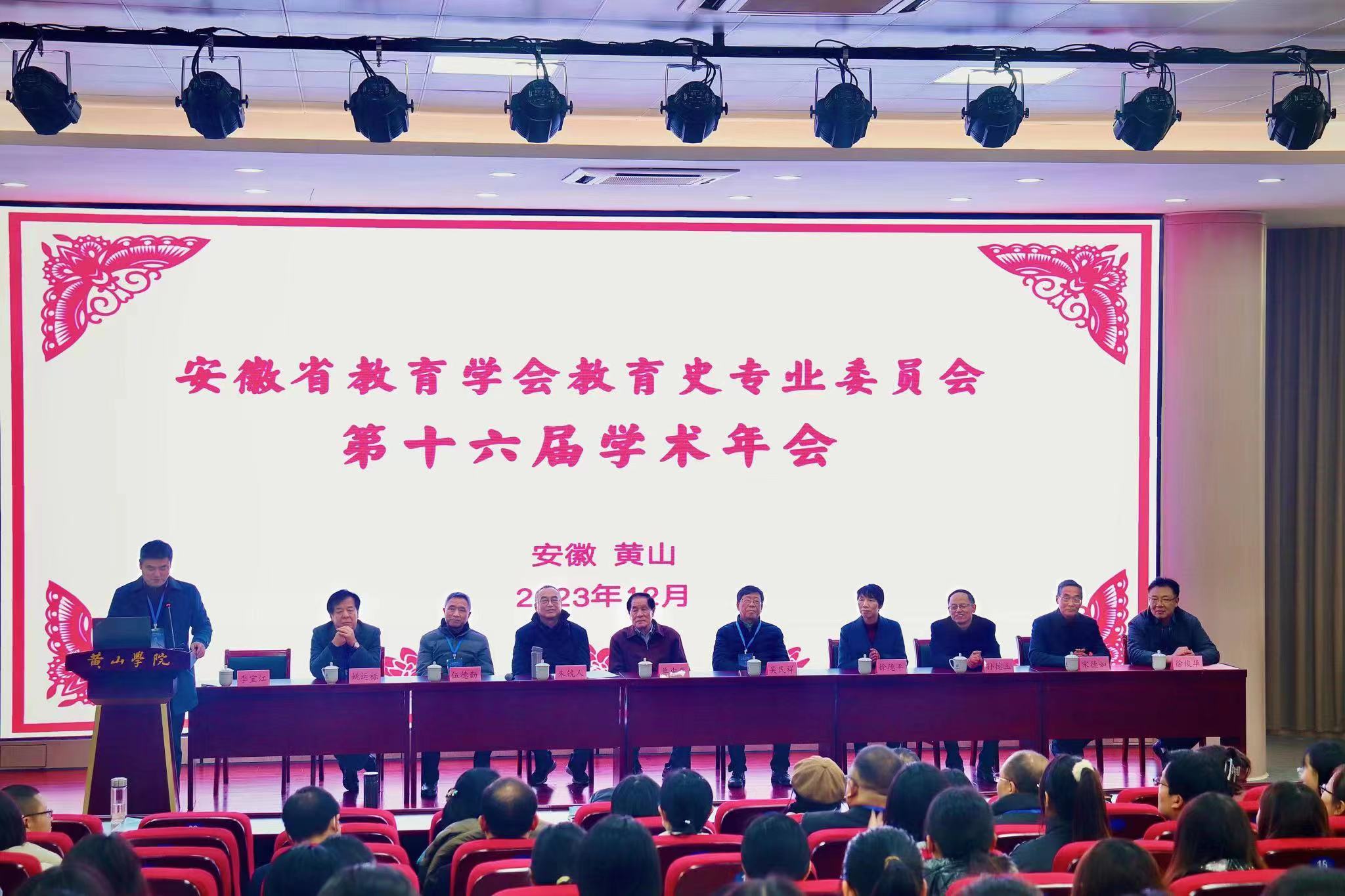 本网讯(通讯员:李彩平)2023年12月2-3日,安徽省教育学会教育史专业委员会第十六届学术年会在黄山学院顺利召开。本届年会主题为“教育史研究与教育高质量发展”。华东师范大学教育系单中惠教授,浙江师范大学教育学院吴民祥教授,黄山学院党委宣传部副部长徐德平,黄山学院教科院党总支书记徐俊华教授,省教育史专业委员会理事长、安徽师范大学孙德玉教授,安徽省教育史专业委会秘书长、安徽师范大学李宜江教授以及来自安徽各高校近40名专家学者和研究生参加了本届年会。