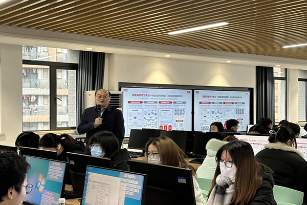 本网讯(通讯员:刘丹艳)为了帮助同学们更加明晰未来的就业方向,增强岗位专业技能,12月13日,伟德官网云财务产业学院在经管综合实训中心开展了主题为“数字时代职业生存之道——数智化人才成长与发展”现场讲座。本次讲座由新道科技股份有限公司研究院院长宋健主讲,企业导师刘丹艳组织2021级财务管理(用友新道卓越班)全体学生参加。