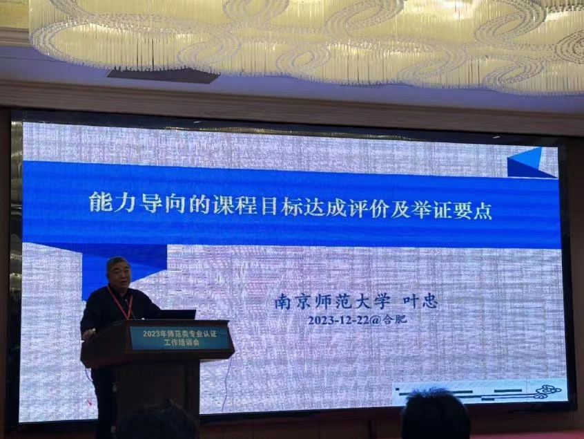 第二场由南京师范大学叶忠教授作《能力导向的课程目标达成评价与有效改进》的主题报告。报告从准确理解“面向产出”、课程目标达成评价的“框架设计”、课程目标达成评价的“举证要点”三个方面进行,介绍了课程目标达成评价的机制与方法。