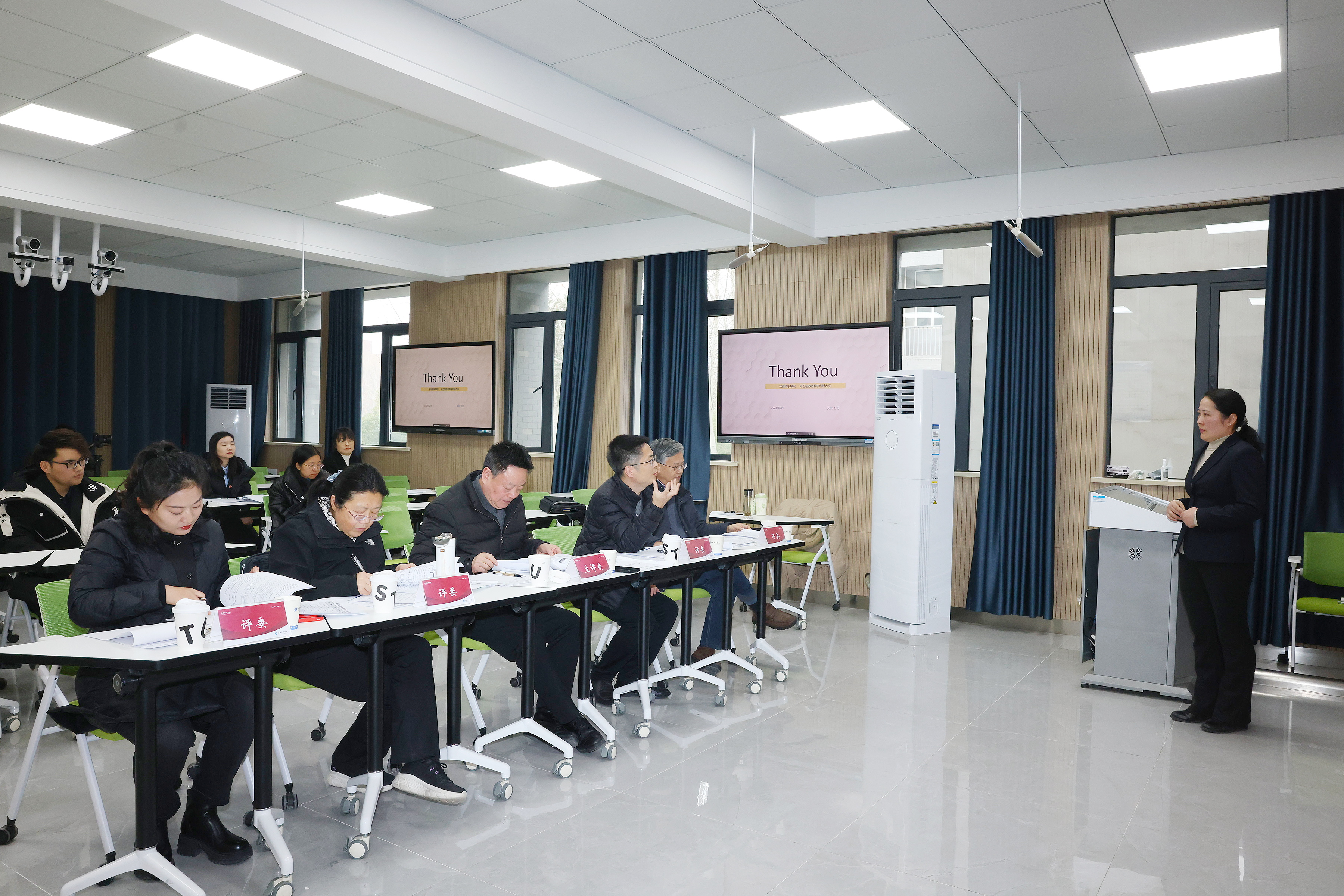 2月14日下午,决赛现场赛在实验5号楼智慧教室举办。本次大赛分为两个大组,分设新工科组、基础课程组、新文科组、课程思政组、产教融合组5个组别。大赛评委团队由来自全国高校教师教学创新大赛的资深专家、国赛评委及获奖教师共10人组成。