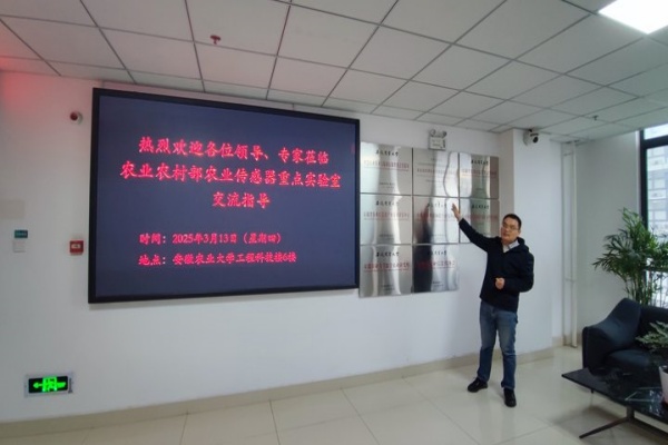 在安徽农业大学信息与人工智能学院领导的陪同下,调研团一行先后参观了人工智能实验室、大数据技术中心、智慧农业创新平台等教学科研场所。饶元详细介绍了学院在智慧农业、数字乡村等领域的特色研究方向及成果应用,双方就实验室建设、科研项目合作等议题进行了深入探讨。