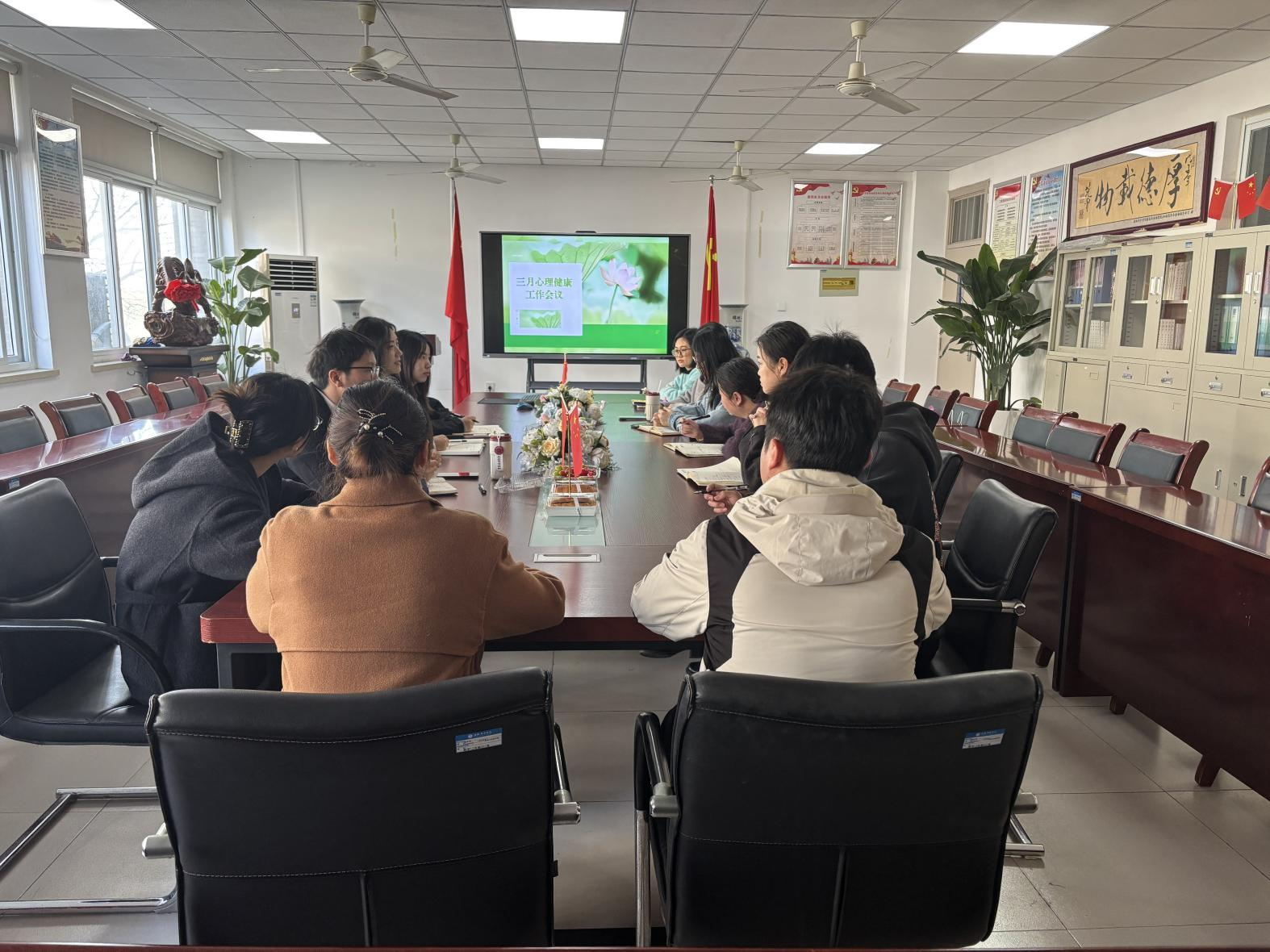 会议围绕二级心理工作站建设、心理健康教育品牌活动、危机预警及干预、心理健康教育宣传等工作内容展开。