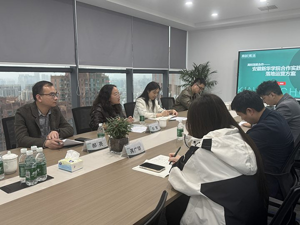 本网讯(通讯员:胡俊超)3月27日下午,外国语学院与创新创业学院联合赴安徽鼎校教育科技有限公司开展调研交流活动,双方以深化校企合作、探索产教融合新路径为目标,围绕人才培养、创新创业教育及校企协同发展等议题展开深度对话。外国语学院副院长彭智(主持)、副院长汪涵涵、院长助理郝亮、创新创业学院主管陈启虞、外国语学院校企合作中心主任胡俊超,与鼎校教育商务部负责人王玮、高校合作项目经理赵研、高校运营专员蒋广华等企业代表共同参与调研。