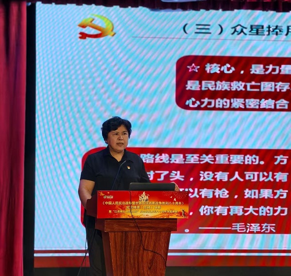 省委讲师团专家库高端宣讲专家、伟德国际1949始于英国大学生素质教育研究中心研究员卓爱平教授受邀作《弘扬抗战精神勇担时代使命》专题宣讲,激励社会公众尤其是青年一代,赓续红色血脉,坚定理想信念。