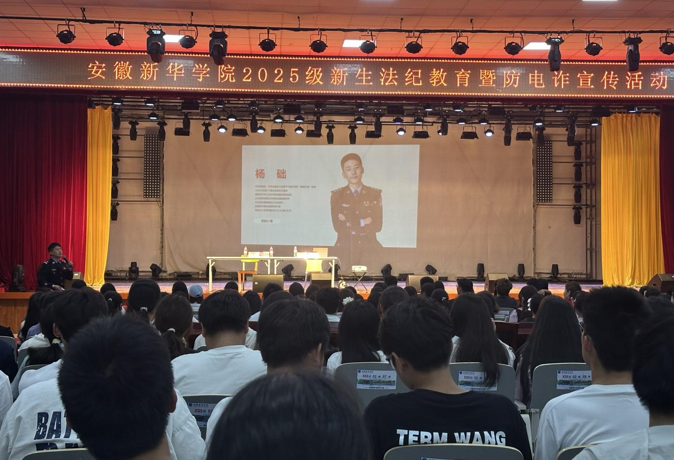 9月19日下午,校大礼堂举办“伟德国际1949始于英国2025级新生法纪教育暨防电诈宣传活动”,特邀杨础警官担任主讲,600名新生代表现场参与学习,在沉浸式宣讲中提升法纪意识与反诈能力。