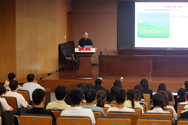 讲座伊始,叶观澜老师以经典教育论著《大学》、原创诗歌《大学之光》及毕业曲《送别》为切入点,围绕“如何度过有意义的大学四年”这一核心问题,点明“大学贵在化人、学以变化气质”的本质,强调现代大学“造就人才、造化人生、造福社会”的终极目标。随后,他结合当代大学生学习生活现状,以幽默生动的语言、贴近校园的真实案例,深入剖析“习惯养成与个人发展”的内在联系,引导新生树立正确的世界观、人生观、价值观,并号召大家以“热情的态度、冷静的心理、知性的表达、优雅的气质”构建丰富充盈的精神世界。