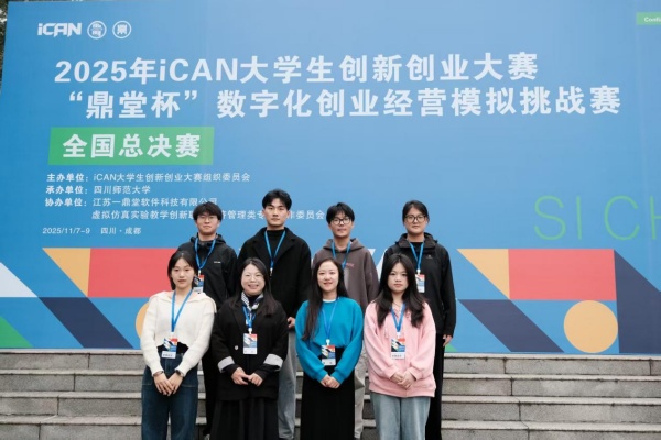 本网讯(通讯员:许冬瑞)11月9日,2025年在iCAN大学生创新创业大赛“鼎堂杯”数字化创业经营模拟挑战赛全国总决赛在四川师范大学圆满落幕。本届赛项设置本科组、高职组,大赛共吸引全国379所高校、逾两万名优秀学子踊跃参与,经过校赛、省赛及全国初赛的层层选拔,最终137支优秀队参与全国总决赛。