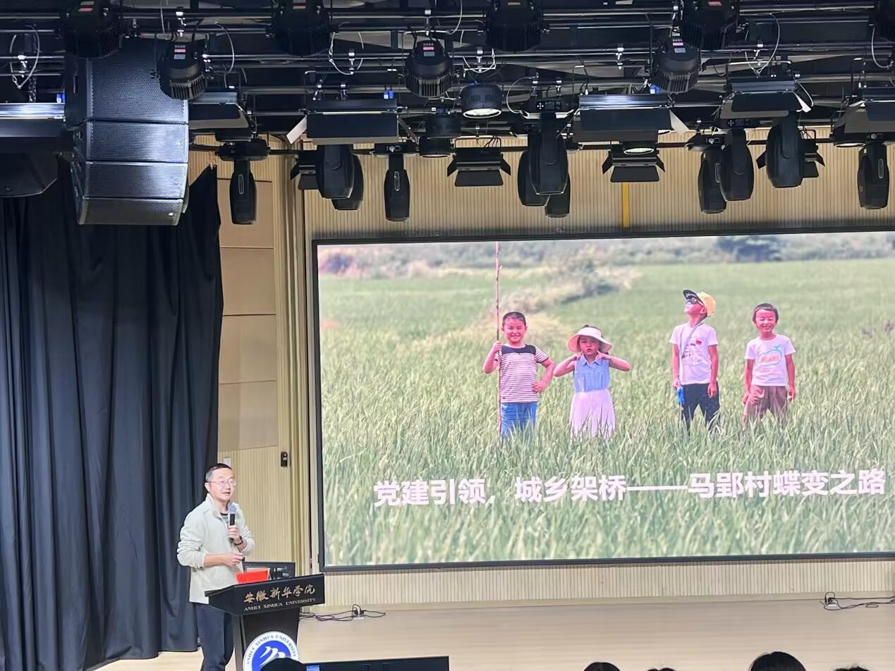 本网讯(通讯员:徐昕、郭欣雨)为扎实推进“大思政”育人体系建设,持续拓展实践教学路径,11月6日至7日,文化与传媒学院党总支在文传演播厅举办“青春行 红色志”实践赋能系列活动之乡村振兴专题讲座。学院积极发挥大思政实践基地——安徽长丰县马郢村的育人功能,特邀该村驻村书记钟宇、旅游农民专业合作社理事长王义强来校交流。院长助理翟春翔主持讲座,学院部分教师及入党积极分子参与学习。