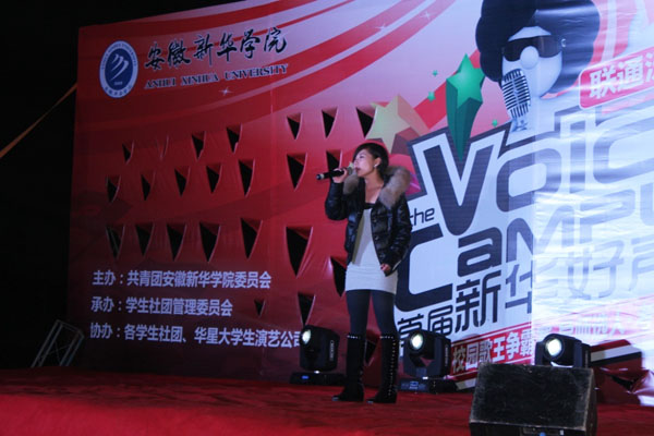 本网讯(通讯员 洪威)11月16日,首届“新华好声音”校园歌王争霸赛导师选人赛、导师考核赛在校如琴湖音乐广场精彩上演。央视青年歌手大奖赛安徽赛区通俗组冠军、安徽电视台《当红不让》栏目评委刘小雅,安徽电视台节目主持人大海,校团委洪威老师担任本届好声音的导师。比赛从中午12点一直持续到晚上10点,共有3000多名同学观看,现场气氛十分热烈。