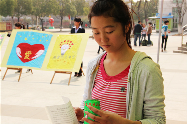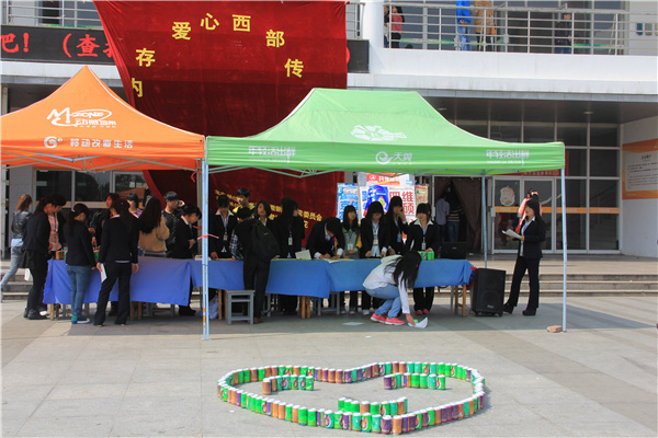 本网讯(马闵、陈亮、明梦晨)3月18日中午,由校团委主办、青年志愿者协会格桑花工作站承办的 “罐内存爱心,西部传真情”西部助学活动在翰林广场举行。