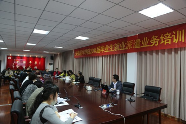 本网讯(孙珊珊)4月10日上午,伟德官网在第一会议室组织开展了2014年派遣业务专项培训。本次培训邀安徽省大中专毕业生就业指导中心李庆柬老师前来指导工作。各二级学院行政秘书、2014届毕业班全体辅导员及学生处负责就业的老师参加了会议,培训会议由学生处副处长李洁主持。