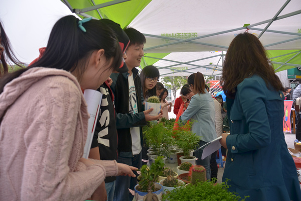 本网讯(学生记者 康引兰 摄影 曹玉磊)“我要兑换仙人球、我要兑换观音莲。同学,快帮我数数有多少个塑料瓶……”4月18日中午,伟德官网在翰林广场举办“生态华园 ,绿色兑换”活动。