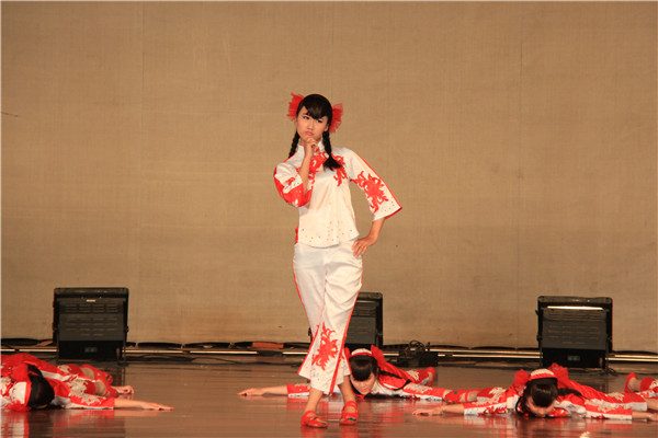 此次演出,大学生艺术团带去了精品舞蹈《剪纸姑娘》。伴随着音乐的节奏,舞者们翩翩起舞,手上不停的变换着动作,而这些动作又无一不在展示剪纸的过程。她们时而分散,时而聚拢,表演得到了现场观众的热烈掌声与喝彩。一曲终了,这群可爱的姑娘再次围拢在了一起,她们摆出了各种不同的姿势,组合成一个美丽的剪纸图案,再一次完美诠释了中国民间传统艺术——剪纸。伟德官网艺术团表演的舞蹈得到了中科大学生舞蹈团团长王梦琳的称赞,她说:“这是我第一次看到新华学院的学生跳舞,剪纸姑娘太赞了,满场都是掌声,舞蹈动作齐,特别是难度较大的动作也能做到整齐划一,队形变化也很优美。”