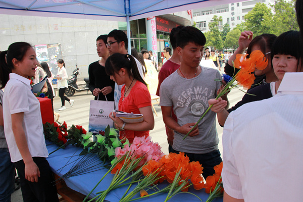 活动以“义卖”和“一元捐献”相结合的形式开展。经过前期广泛的宣传,本次活动取得了良好的效果。上午八点,义卖活动正式开始,志愿者们把他们利用课余时间制作的动物串珠、手工花、中国结等手工艺品被摆上展桌。展台边,同学们饶有兴趣地挑选志愿者们精心制作的手工艺品,并认真详细地询问了捐助流程、善款去向。