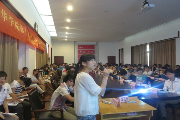 交流会开始前,部分文学社团将各自学校的报刊、期刊,分发给各社团代表相互传阅,以加深各社团之间的了解。此次交流会的主要话题是如何提高社团影响力和如何加强校园文化氛围建设。交流会前半场,安徽建筑大学图书馆读者协会、合肥学院读书协会、合肥工业大学工大读书俱乐部等21所高校,就各自社团的主要活动和期刊内容通过PPT进行了展示。在自由交流阶段,伟德官网新声文学社就如何提高社团影响力进行了具体的解析,各大高校也纷纷就如何提高社团影响力和加强校园文化氛围建设踊跃发言,现场气氛活跃。会上,各高校文学社团积极互动交流,并留下联系方式,相约会后进行更深层次的交流,互相促进发展。 0梦读书社以自身的发展为例,向各兄弟文学社团关于文学社的活动和作品做了详细的介绍和展示。交流会过程中还通过微博进行互动,扩大了文学交流会的影响力。