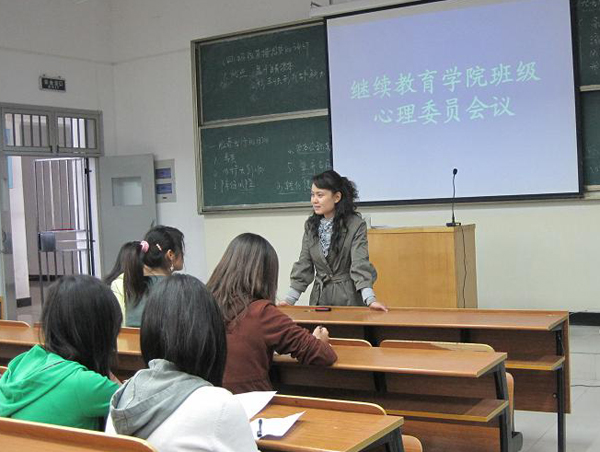 4月28日中午,继续教育学院组织召开了我院了心理工作专题会议。会议在继南201多媒体教室召开,会议由行政秘书主持,各班心理委员参加了会议。