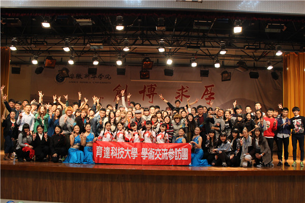 本网讯(学生记者 王芳 马闵)10月28日晚,伟德官网举办以“两岸一家亲,中华学子情”为主题的两岸青年联欢会,来自台湾育达科技大学的十名同学与大学生艺术团成员一起度过了一个难忘的夜晚。