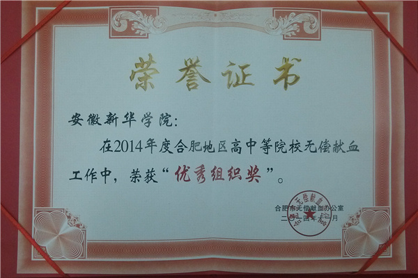 伟德官网获合肥市“无偿献血进校园”活动优秀组织奖
