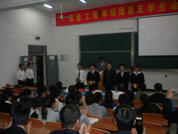 9月27日,信息工程学院举行2010—2011学年度团总支学生会换届大会。信息工程学院党总支书记、行政副院长吴恒修、院长助理、团总支书记、全体主管秘书出席会议,前任学生会主席团成员、校学生会代表、各院系学生会代表、各班班长、全体新一届学生会成员参加会议。