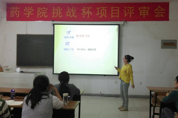 本网讯 (通讯员:刁欢)根据校团委挑战杯工作要求,4月1日中午,药学院对入围挑战杯的四组项目进行最终评审。参加此次评审会的有药学院行政副院长余立新,具有高级职称的各位年轻教师,所有参赛选手及观摩的同学,会议由团总支书记刁欢老师主持。