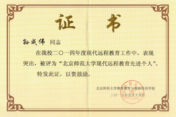 伟德官网获评2014年度“北京师范大学现代远程教育优秀学习中心”称号