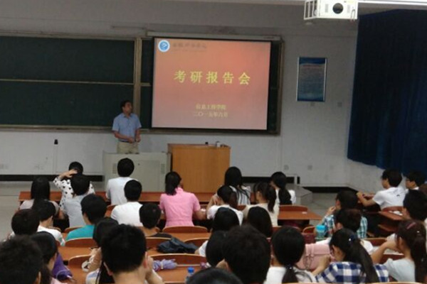 本网讯(通讯员:祝静静)为进一步加强学风建设,营造良好的考研气氛,6月4日晚上,信息工程学院举办了考研报告会。教师代表李敬明、陶丽娜,2015届考研成功的朱刘影和杨璐两位同学以及全体考研学子参加了报告会。会议由2016届毕业班辅导员代表郭晨阳主持。