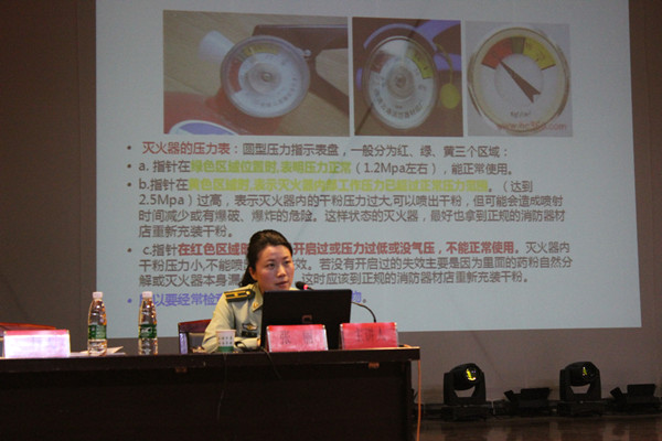 合肥市高新区消防大队张丽结合自身多年来的消防工作经历,详细讲解了火灾的危险性,火场的逃生与自救,灭火器的使用方法,并通过列举火灾事故典型案例,强调在火场中保持头脑冷静及保护呼吸道的重要性。