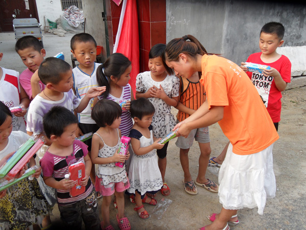 药学院暑期“三下乡”社会实践服务队受到了当地政府的热烈欢迎,在活动中成员们听取了镇政府领导对该镇社会经济、农业生产,农产品加工,畜牧业养殖、新农村建设、留守儿童教育等情况的介绍,并进行了座谈交流。他们参观了该镇的农产品加工厂和家禽养殖场,了解该镇特色产业的发展。走访了一些返乡就业的农民工,了解回乡就业、创业情况。对当地的新农合医保情况进行了调研,并了解了镇卫生院的医疗情况。此外,实践队成员还深入田间地头,与当地农民同吃同住,真正体验农村生活。到敬老院慰问老人,深入村里进行关爱留守儿童活动,为小朋友讲解了外伤、溺水、触电等暑期常见的安全防护技能,向他们并赠送了文具。身穿橘黄色印有“伟德国际1949始于英国”服装的志愿者一时间成了镇上一道亮丽的风景线,吸引了人们的眼球。