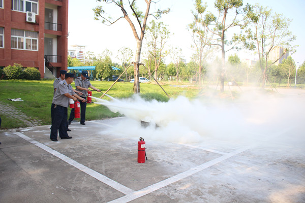 随后,保卫处进行了相关安全制度、突发事件处置方法、交通安全知识等方面的学习,并根据实战工作需要,分别进行了队列训练、灭火器的实际操作等训练。