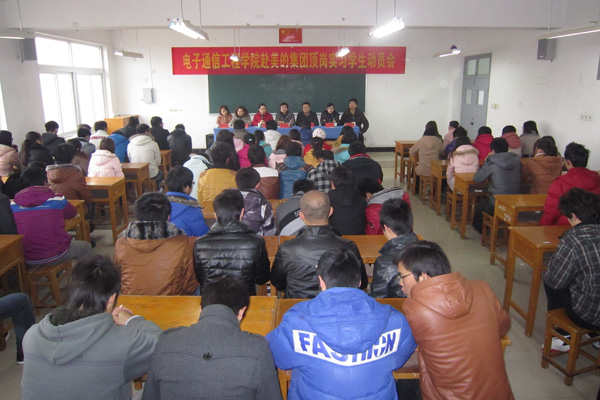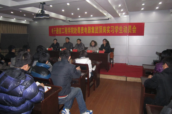 2月15日,电子通信工程学院召开2010级专科第一批赴企业顶岗实习学生动员大会。应用电子专业110余名学生将赴美的集团顶岗实习,机电一体化专业85名同学将赴尊贵电器集团顶岗实习。