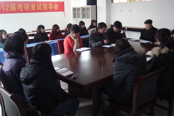 为帮助2012届毕业生考研初试成绩优异的同学顺利通过复试,3月8日中午,外国语学院在会议室召开考研复试指导交流会,外国语学院院长任静生、教学副院长王志宏、部分青年教师以及20余名考研学子参加了交流会。