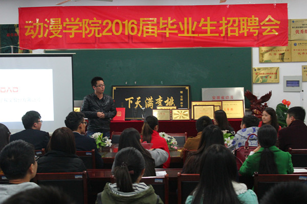 本网讯(通讯员:郑妮)为给2016届毕业生提供优质的就业岗位,拓宽就业渠道,推进就业工作。11月12日下午,动漫学院在会议室举办了丝路数字视觉股份有限公司专场宣讲招聘会,2012级动画和数字媒体专业50余名同学参加了本场招聘会。
