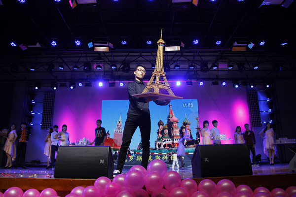 舞起乐鸣,晚会在一段舞蹈中拉开帷幕,几位女生的舞蹈洋溢着校园风情,观众席上掌声连连。晚会节目精彩纷呈,气氛活跃,安徽建筑大学黎宗伟同学用音律醇厚的美声演唱《北京颂歌》、《我的太阳》,为伟德官网建筑与工程协会五周岁生日献上祝福。古风古韵的《惊鸿舞》以及炫酷的《电光舞》也给现场的观众留下了深刻的印象。值得一提的是本次晚会的舞台装饰——广州塔“小蛮腰”模型,它由建筑与工程协会成员历时一个多月完成,模型高达四米,做工精细,标志着建筑与工程协会不断提升的模型制作水平。晚会还采用了微博、微信等新媒体的形式,与现场观众互动。最后,晚会在建筑与工程协会的改编歌曲《听泉东路的日子》中圆满落幕。晚会期间,建筑与工程协会往届成员还献上了题有“建协增辉”四个大字的匾额。