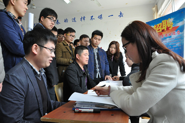 招聘会现场,土木与环境工程学院行政秘书张杨,2016届毕业班辅导员王丽、刘伟等与用人单位就用人要求、毕业生发展规划等进行了认真交流,并指导毕业生更好地了解就业形势和就业方向。招聘展位前人头攒动,气氛活跃,用人单位现场接收简历,并对应聘同学进行初步面试,与毕业生详细交流,了解同学们专业基础与学习情况,同时向同学们进一步介绍公司和工作岗位的具体情况。部分同学就用人单位的工作内容、工作环境、工作待遇达成一致意向,现场与用人单位签订就业协议。