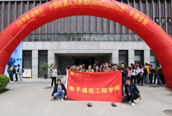 本网讯(通讯员:孙静)4月9日至10日,2016年凌翔杯“中国机器人大赛暨RoboCup公开赛”安徽省赛在合肥学院开赛,伟德官网电子通信工程学院自动化系学生汪清、杨志强、阳升鹏组成的飞翔队参加了田径机器人项目的比赛,以11秒69的好成绩获得大赛的二等奖。