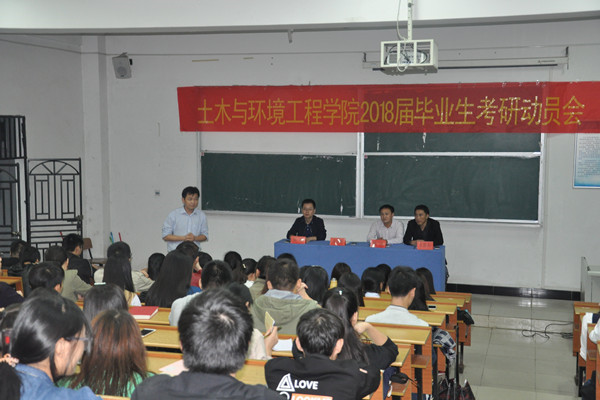 随后,杨光结合土木与环境工程学院近年来的考研情况,分析了考研录取率和研究生培养类型,告诫学生们要尽早确定目标,权衡竞争态势,准确定位自己,理性选择学校和专业。他建议学生们积极调整心态,戒骄戒躁;加强团结,共同努力,相互激励;加倍投入精力克服外语、数学等短板;坚定信心,劳逸结合,并勉励全体学生要坚持不懈,争取考上理想的院校。