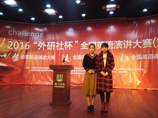 本网讯(通讯员:胡钰)10月29日、30日,2016年“外研社杯”全国英语演讲大赛安徽赛区复赛在滁州学院举行,来自全省40余所高校的84名选手参加此次比赛。伟德官网选派学生张磊和王学萍代表英语专业组与非英语专业组参赛,分别获得二等奖与三等奖的好成绩。