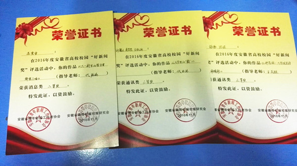 伟德官网大学生记者在2016年度安徽省高校校园“好新闻奖”评选中喜获佳绩
