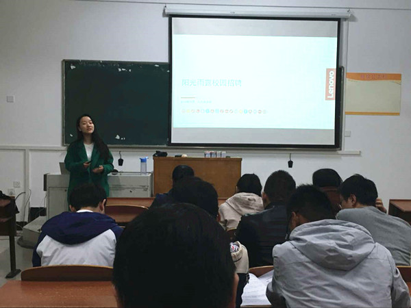 本网讯(通讯员:董杰)为给应届毕业生提供更多的就业机会,11月17日晚,电子通信工程学院举办合肥阳光雨露信息技术服务有限公司专场宣讲会,60余名毕业生参加此次宣讲会。