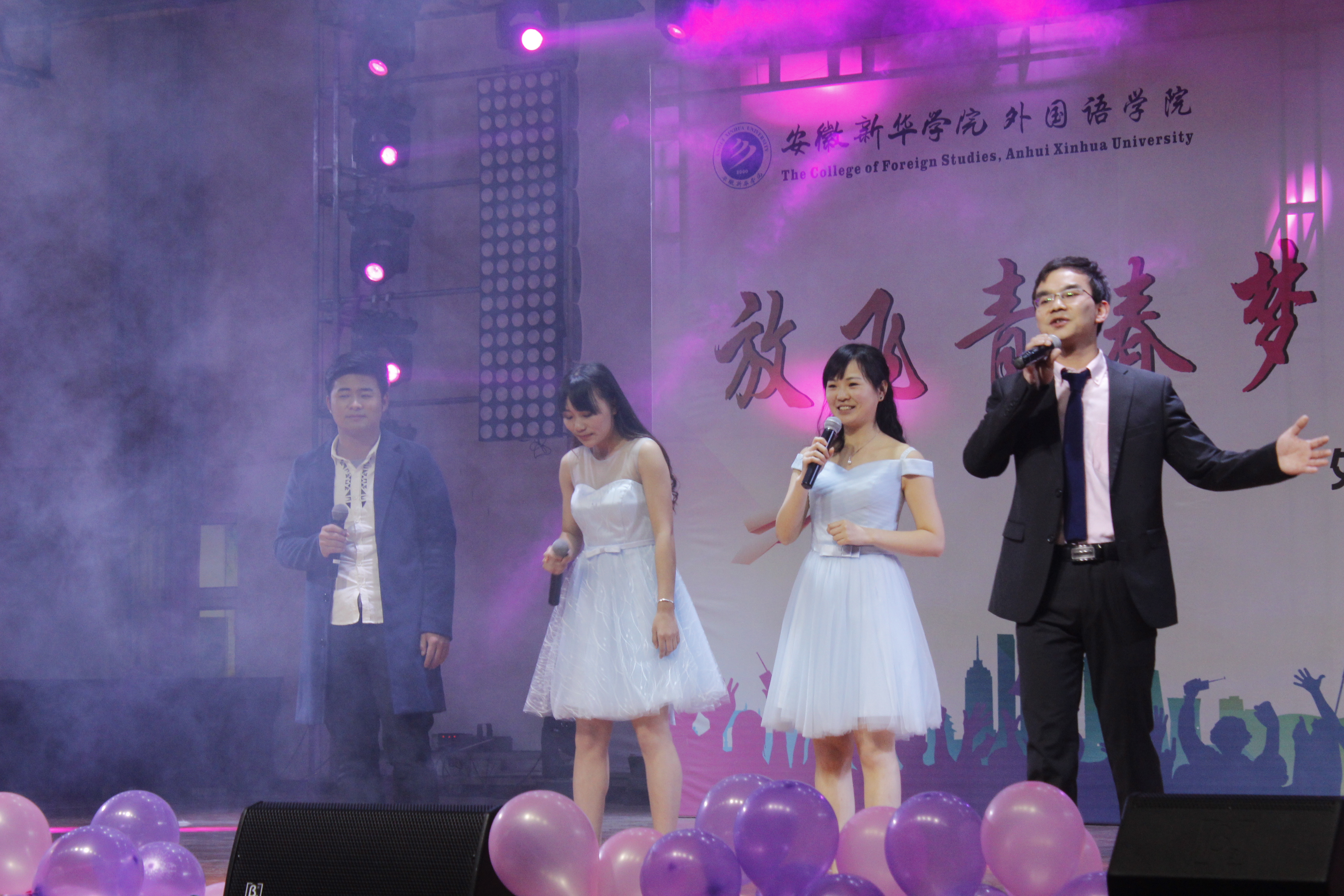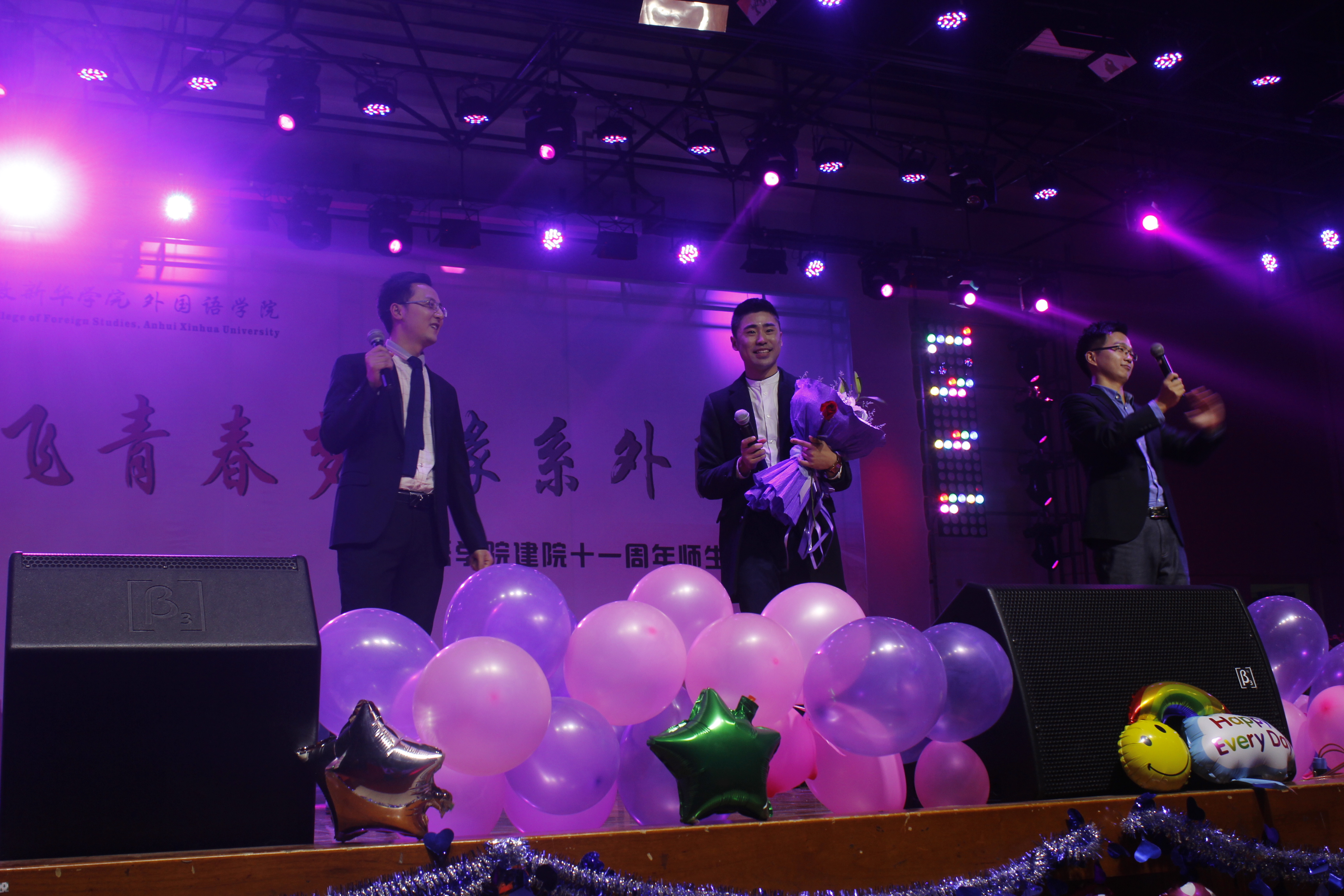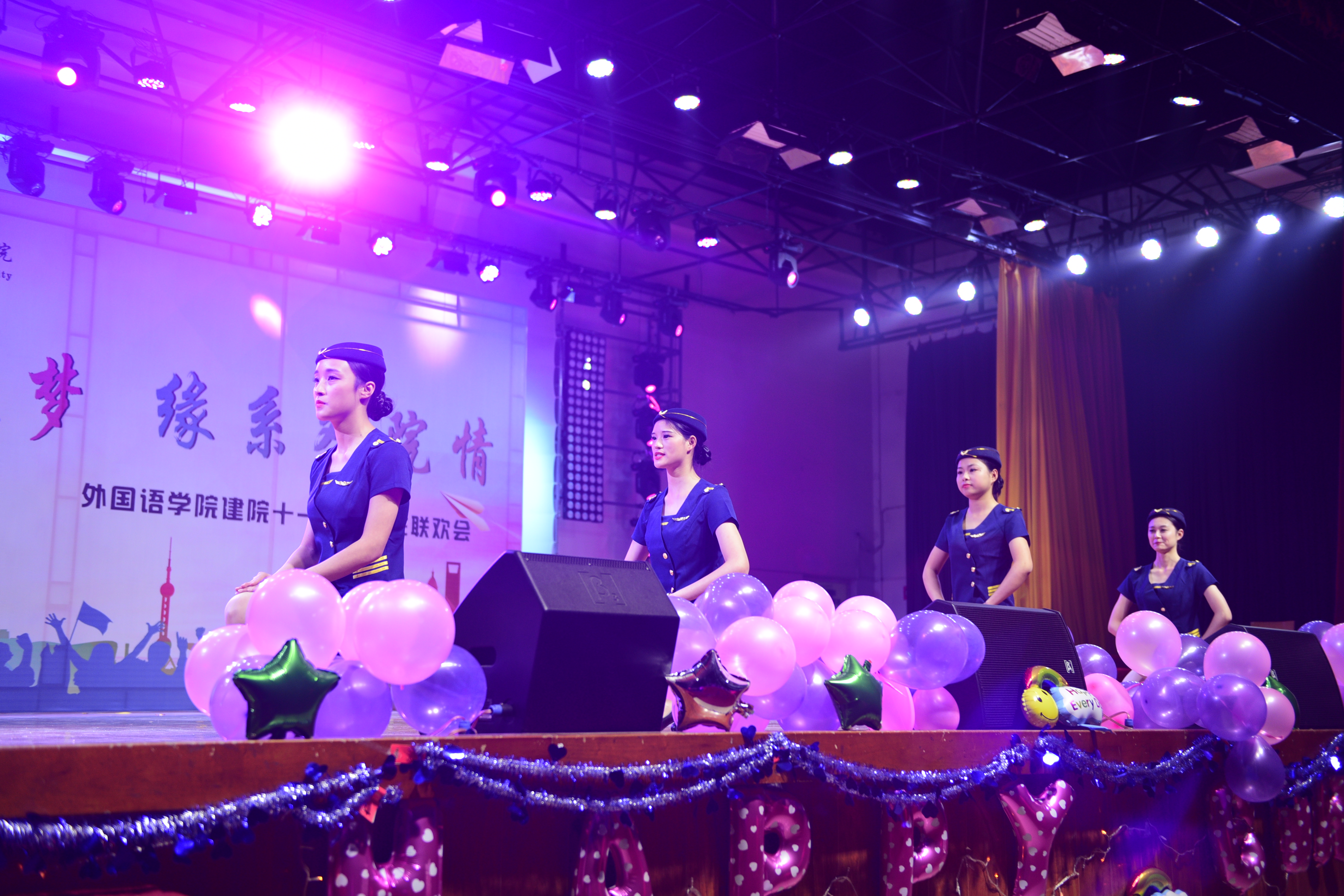 本网讯 (通讯员:万媛媛,摄影:徐叶琴)为庆祝建院11周年,12月5日晚,外国语学院 “放飞青春梦,缘系外院情”11周年暨师生联欢会在校大礼堂举办。外国语学院执行院长邵玲,药学院副院长余立新,科技学院副院长李洁,外国语学院院长助理杨艳霞、周景及外国语学院全体师生、校友代表观看了晚会。