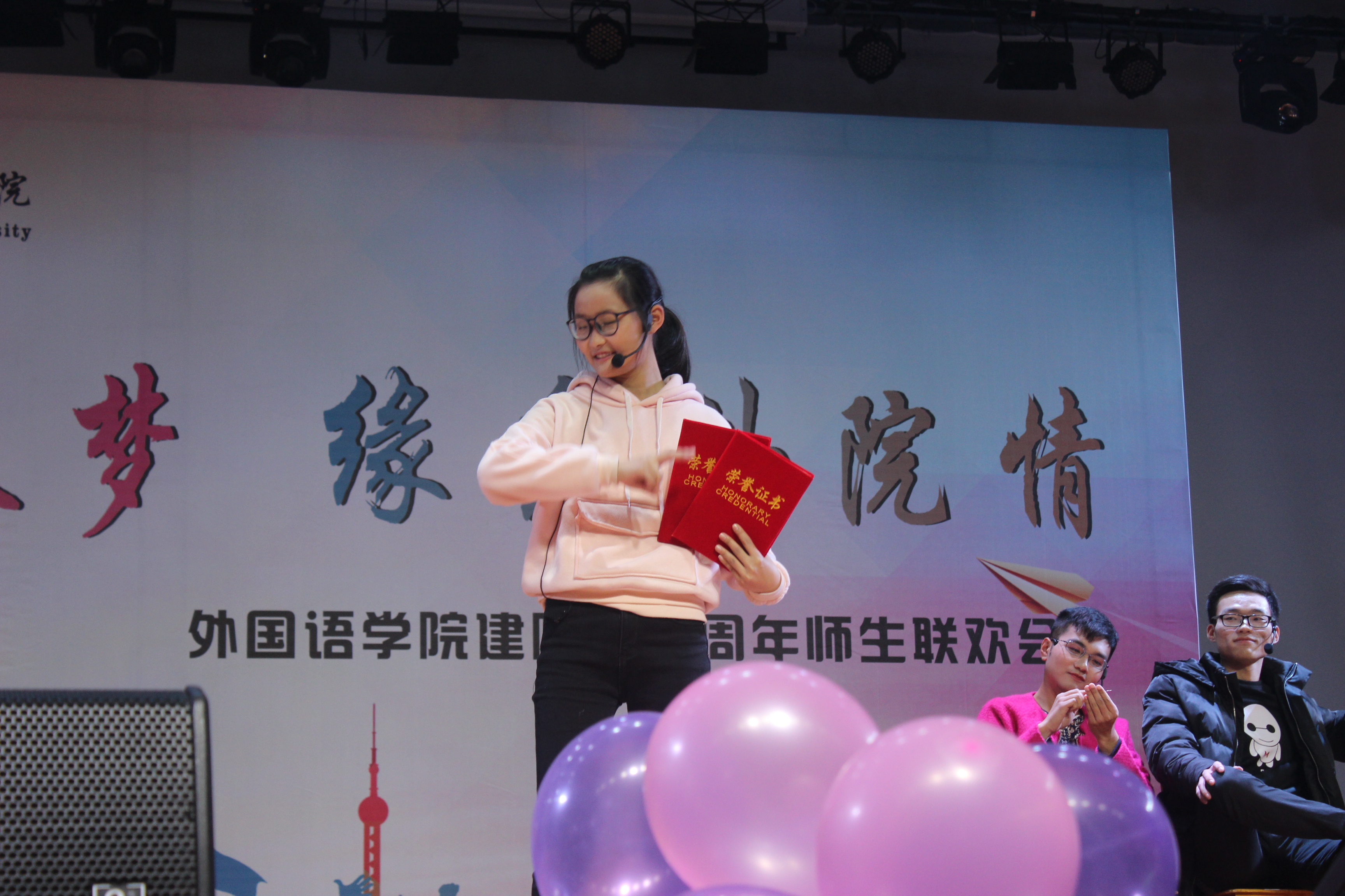 邵玲首先致开幕词,她回顾了过去一年外国语学院取得的荣誉和成绩,明确了未来的发展方向,同时为外国语学院送上了生日祝福。