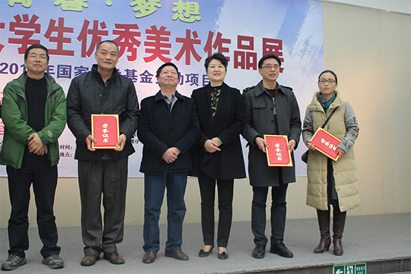 本网讯(通讯员:朱诵贵)12月11日,由合肥市文联主办,合肥-久留米友好美术馆协办的“青春•梦想——安徽大学生优秀美术作品展”在合肥-久留米友好美术馆隆重开幕。动漫学院共有11幅学生书画作品参展,2篇征文被评为优秀征文,同时,动漫学院也获得此次活动“最佳组织奖”。动漫学院副院长朱诵贵和部分师生应邀参加了开幕式。