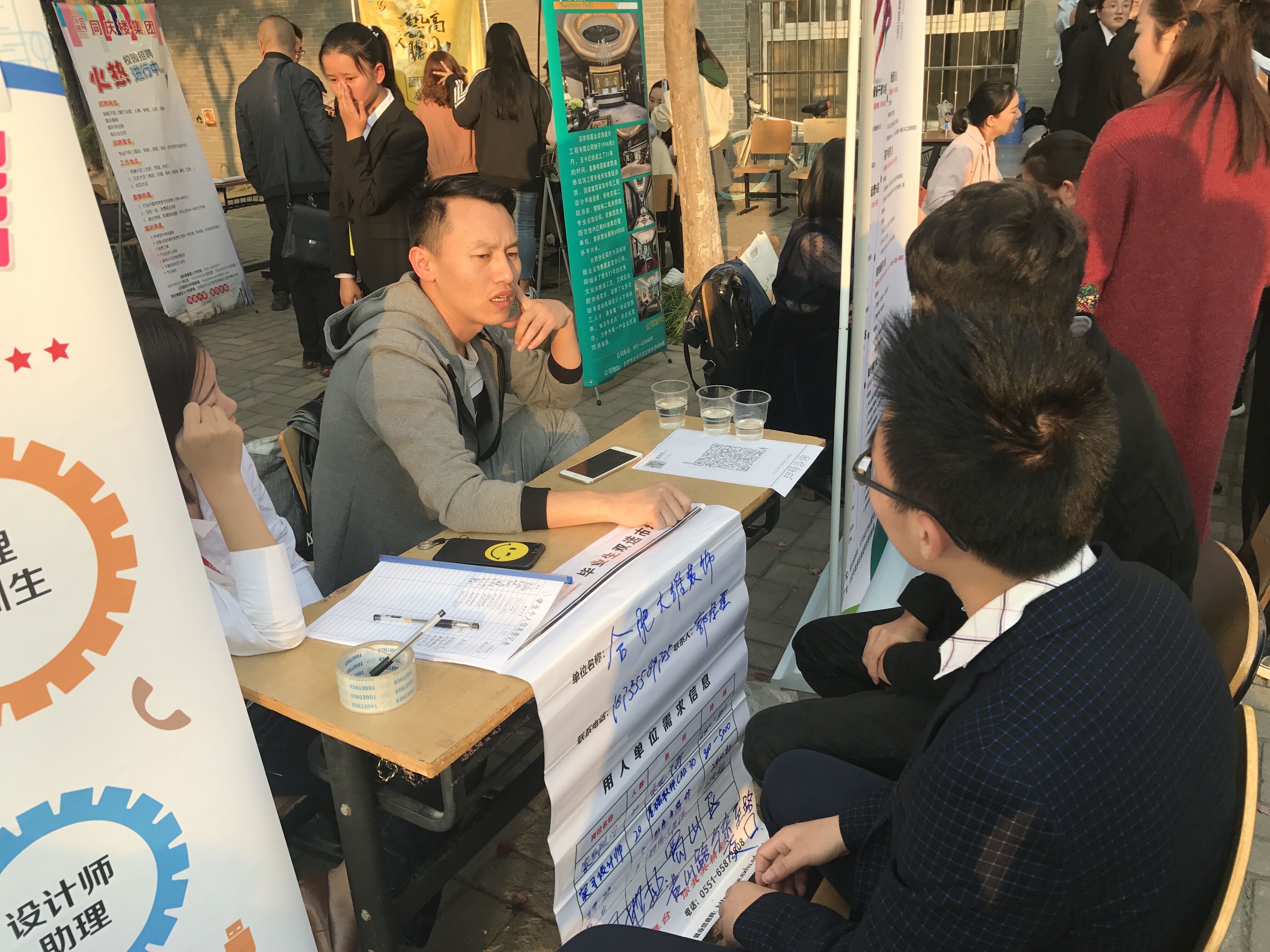 招聘会上,毕业生们手持自己精心准备好的简历和自荐信,自信、积极、主动地了解用人单位的情况并同招聘企业交流,现场气氛十分活跃。毕业生们积极咨询相关职业薪资以及职业前景。