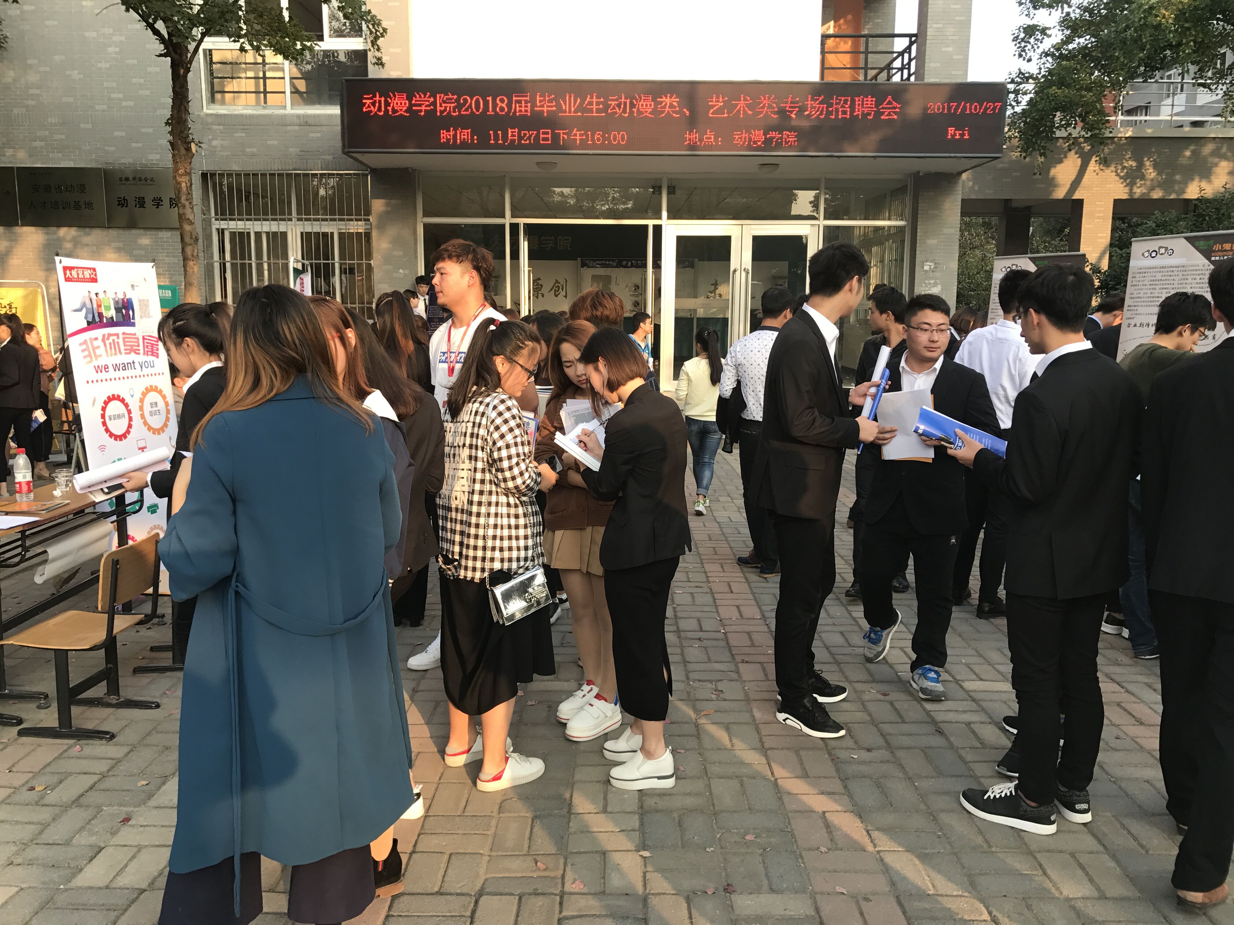 本网讯(通讯员:涂思静)10月27日,动漫学院举办了2018届毕业生动漫类、艺术类专场招聘会,合肥超众文化传媒有限公司、安徽鸿龙装饰公司、小鬼当家、一号家居网、百武西等企业及动漫学院200余名毕业生参加了此次招聘会。