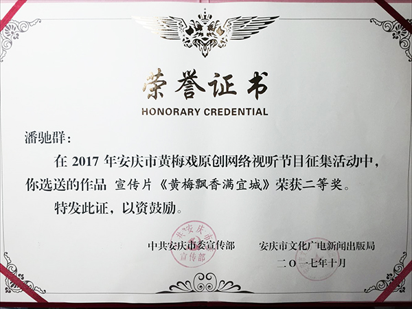 本网讯(王友雅)近日,在黄梅戏原创网络视听节目征集活动中,伟德官网教师潘驰群的作品《黄梅飘香满宜城》入选并荣获二等奖。