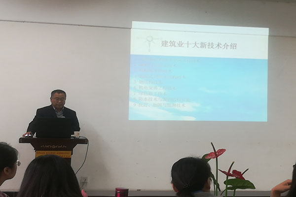 曾伟围绕本次学术报告的主题,详细讲解了建筑业目前十大新技术:地基基础和地下空间工程技术、钢筋与混凝土技术、模板脚手架技术、装配式混凝土结构技术、钢结构技术、机电安装工程技术、绿色施工技术、防水技术与围护结构节能、抗震、加固与监测技术、信息化技术。他结合工程实例图片和工程视频解析了新技术的应用和创新,让在场师生更加具体形象地学习最新建筑结构技术。他在报告中还对目前市场上比较关注的建筑工业化问题进行了阐述。报告结束后,与会师生非常积极地就报告中所关注的问题现场请教了曾伟教授,曾伟教授对大家提出的问题认真地解答。
